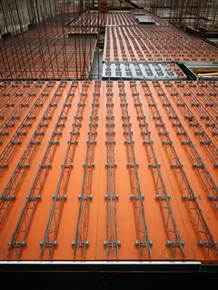 裝配式可拆卸鋼筋桁架樓承板是將鋼筋桁架與底模通過專用扣件連接而成,施工階段主要由鋼筋桁架承受荷載,待樓板混凝土達到設計強度后,底模可拆卸的鋼筋桁架樓承板。