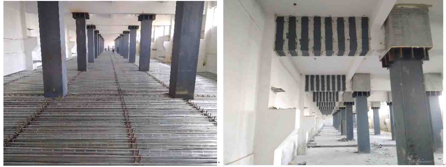 項目為8棟單體、多層廠房建筑改造為數據中心;工作內容涵蓋樁基礎、加層鋼結構、局部梁板粘鋼加固施工等;用鋼材1000t,夾層面積1.6萬㎡。
